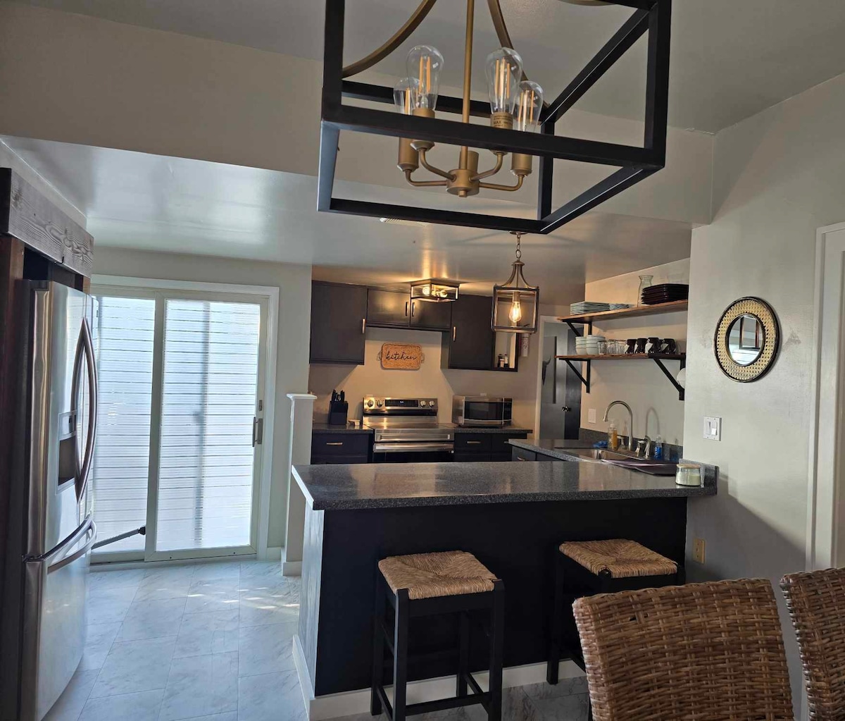¡Equipado con WIFI rápido, purificador de aire HEPA y limpieza de aire PlasmaWave! Ubicada en Main Street, en la histórica ciudad ferroviaria de Cut Bank, cerca del Parque Nacional Glacier, esta nueva suite estudio remodelada cuenta con una estética moderna y funciones como encimeras de cuarzo, hermosos azulejos de vidrio y una ducha a ras de suelo de tamaño completo. También cómodamente equipado con aire acondicionado, una suscripción de 55" Roku Smart TV y Netflix, y espacio de escritorio. Amenidades de cocina completas con artículos de cocina básicos.