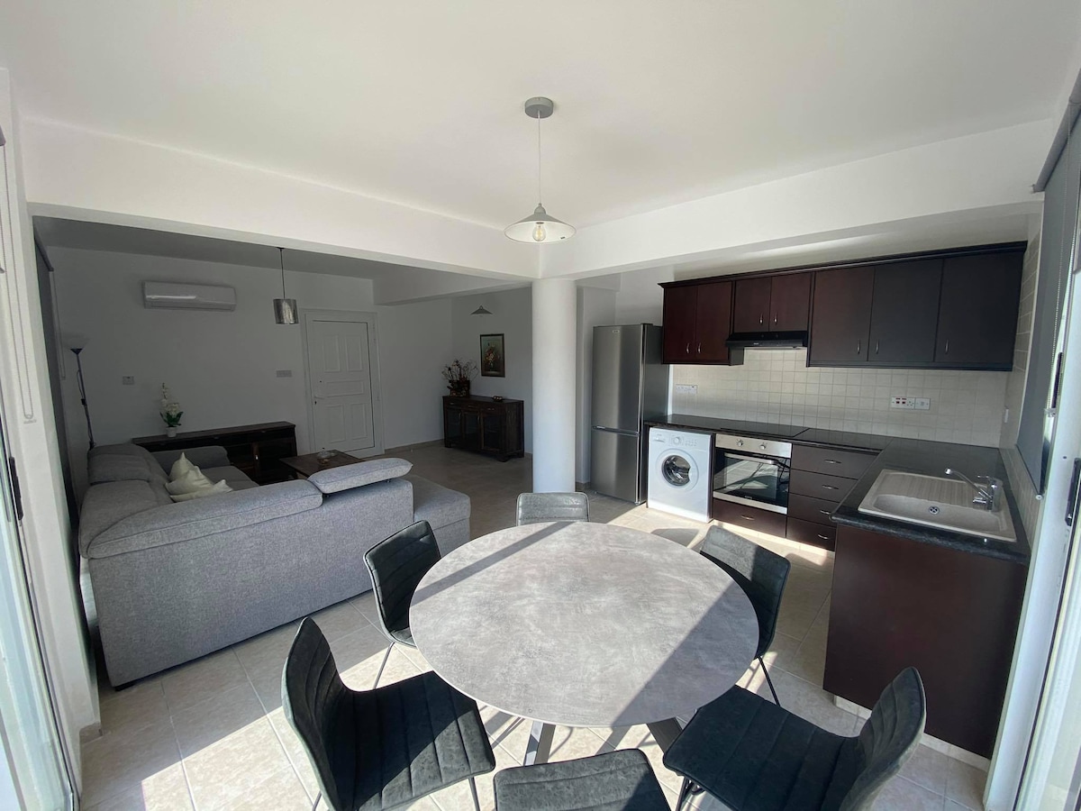 El departamento está ubicado en la zona turística de la ciudad. Al otro lado de la calle del Hotel 4Seasons. Playa amplia y de arena con tumbonas en 3 min. Hay un sendero a lo largo de la playa, que se puede caminar o correr. Su longitud es de más de 5 km. Hay tabernas, pizzerías, restaurantes en 4Seasons Hotel, pastelería, tienda de comestibles a pocos pasos de la casa. Ir a la autopista cerca de la casa, lo que hace que sea más fácil moverse por la ciudad y la isla . Centro de la ciudad en 15 minutos en autobús a lo largo del mar