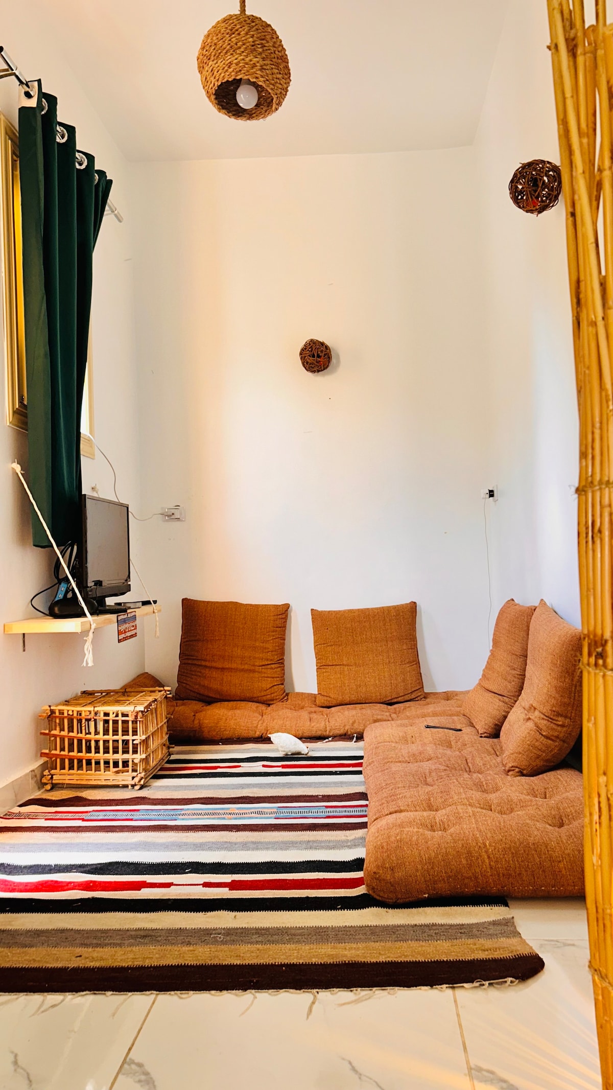 Cabana del mar is one of Assalah's hidden gems which promises you an unforgettable vacation in Dahab . Located directly on Assalah Beach ( steps from Dar Dahab ) , you Enjoy the best seaview from sunrise to sunset without having to leave the house or just relax in the beautiful balcony where u can enjoy a panoramic view of Assalah Beach and mountains while relaxing in the hammock. PLEASE NOTE: Due to Egyptian law : Egyptian couples or Arab passports holder need to provide a marriage proof