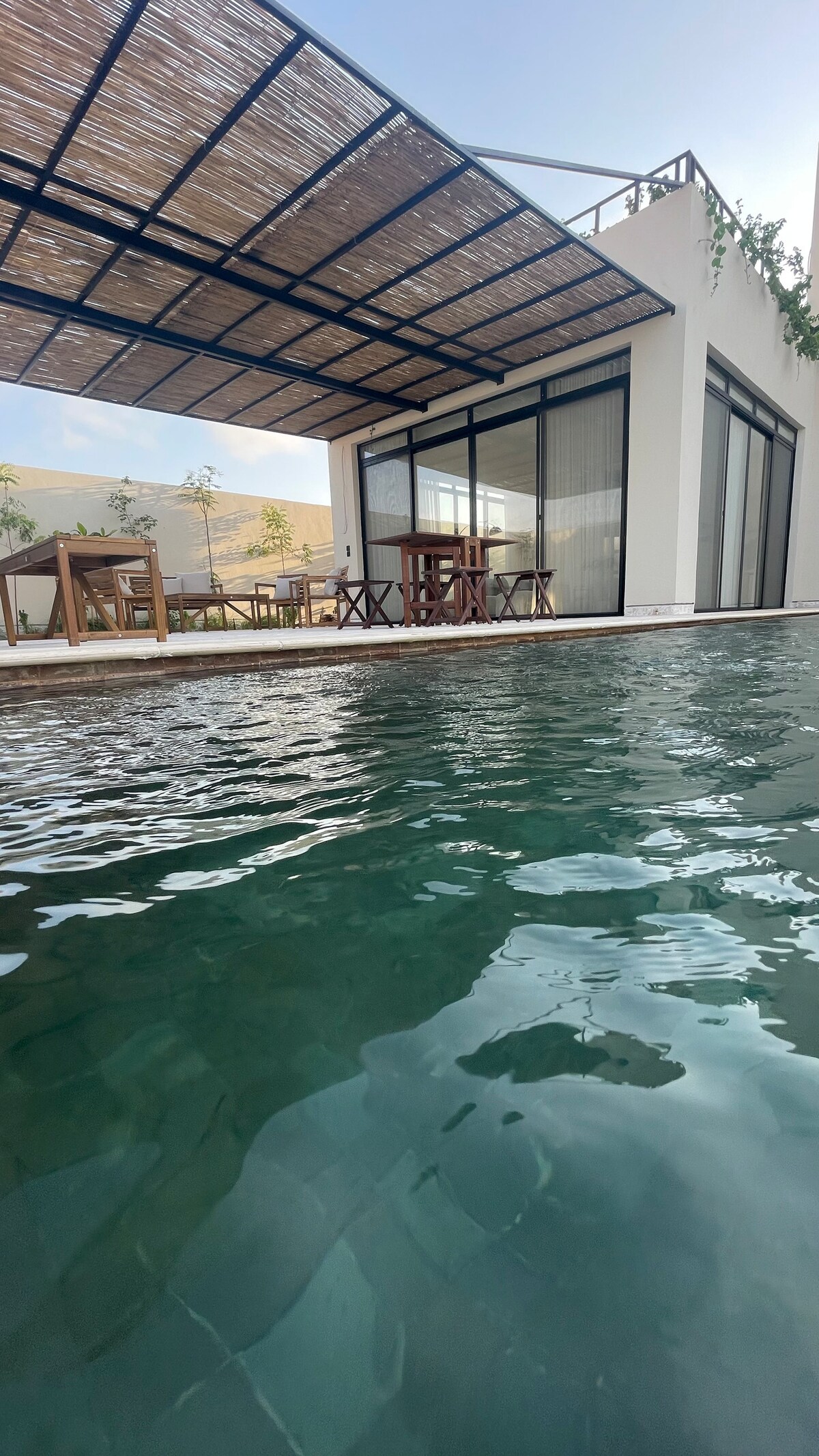 Espero que tengas buenos recuerdos con amigos y familiares (Todos estos en el área al aire libre no en el edificio principal) 1 sala de estar grande + mesa de comedor 6 asientos (cocina de servicio) solo microondas y calentador de agua y nevera pequeña Smart TV para ver películas 1 habitación con cama. 2 baños 2 asientos al aire libre en diferentes ubicaciones Piscina kayak gratis Puedes nadar en la piscina o en el mar Hay un seguro adicional de 500 SAR.