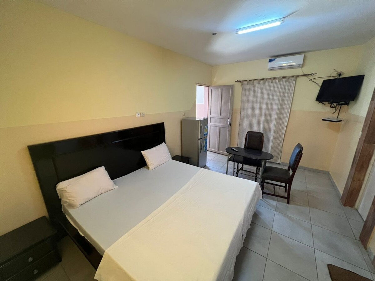 Beautiful one bedroom, one bathroom apartment located on the roof of the most famous bakery in west Africa called "Boulangerie Jaune". The Bedroom is fully equipped. Location is 30 second walk to the supermarket Auchan, 15 minute to downtown Dakar. The bakery and the restaurant are located on the ground floor. Location is well known by all taxi drivers, all you have to say is "Boulangerie Jaune". The area is safe. We provide rental cars, body guard and guide on request. Make yourself at home.