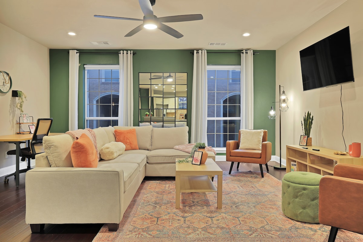 Get the best of urban living in this tucked away luxury townhouse! Enjoy everything from cooking your heart out in the fully equipped luxury kitchen, to kicking back in front of the 86” TV (YouTube TV, Netflix, Disney+), or just simply enjoy a cocktail on the back patio! Luxury linens (1200 thread-count sheets, RH towels, amazing mattresses), well equipped bathrooms, walk-in closet, etc. If business travel is your game, enjoy high speed WiFi and a full desk for your workspace!