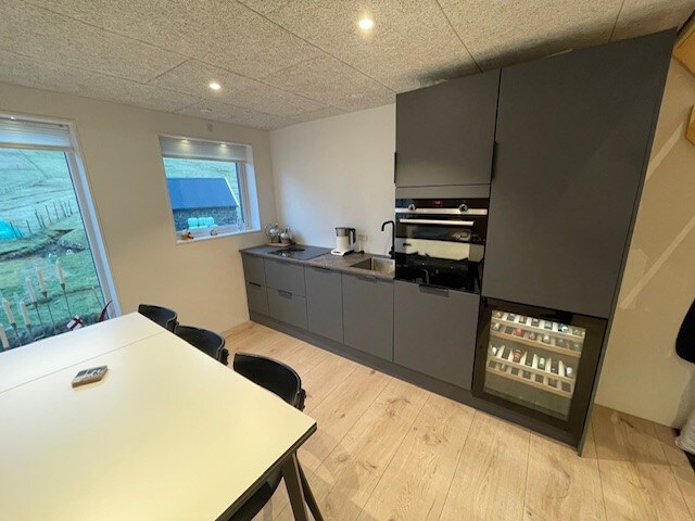 Casa de piedra de casi 200 años de antigüedad en el pueblo histórico de Húsavík en Sandoy. Vives cerca de la naturaleza en una antigua casa de piedra tradicional de las Islas Feroe con césped en la azotea, paredes de madera y pisos de madera y piedra. La casa está en un ala, donde pasás por la “sala de fumadores” (donde está el área para dormir) hacia el living (sala de vidrio). En la sala de estar de humo hay techos altos, mientras que en la sala de estar hay menos, con vistas al mar. Baño de fecha más antigua y una pequeña cocina con elementos nuevos y lavavajillas.