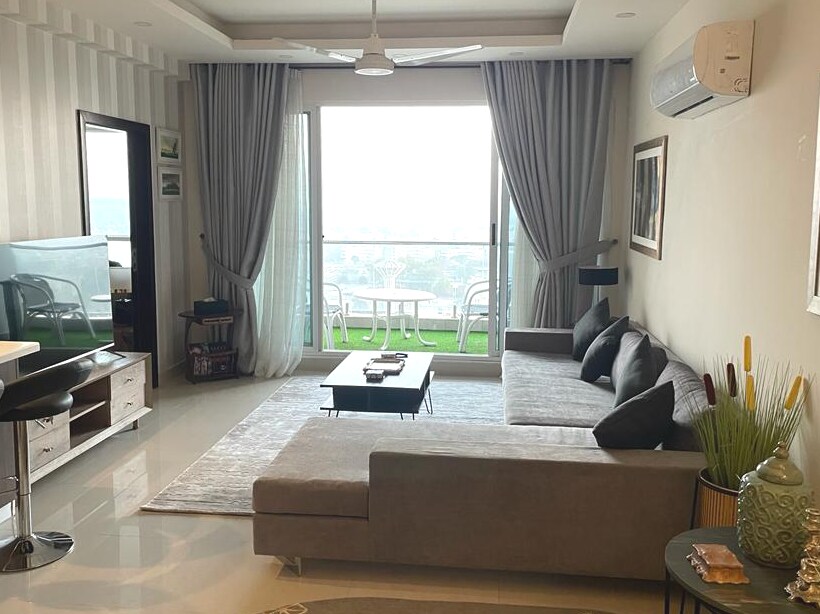 - Ubicado en el centro comercial Centaurus -City View - Estacionamiento gratuito y seguro - Secador de pelo - Tamaño de la suite: 1400 pies cuadrados. - Balcón con 2 sillas y una mesa -Wifi gratuito y rápido: LED inteligente de 58 pulgadas - Aeropuerto a 25 minutos en coche. - Campo de golf a 10 minutos en coche. - Senderos de senderismo a 15 minutos en coche. - Mezquita Faisal, a 10 minutos en coche. - Cocina con todos los servicios básicos. -Iron - Refrigerador - Microondas y tostadora - Botiquín de primeros auxilios - Extintor de incendios - Seguridad 24/7