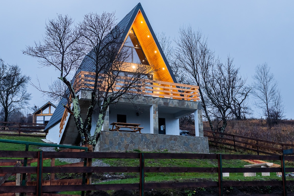 TwinHousesBusteni ofrece 2 casas Aframe/ 4 lugares, en Busteni con vistas a M-tii Bucegi y la Cruz en Caraiman. Cada casa pequeña tiene su propia barbacoa y bañera. El precio de la bañera es de 300 lei y se tarda 4 horas en calentarla y se puede disfrutar alrededor de 5,6 horas, solo con cita previa. Dentro de las casas no se cocina, pero afuera, en el gazebo, ¡hay una cocina!