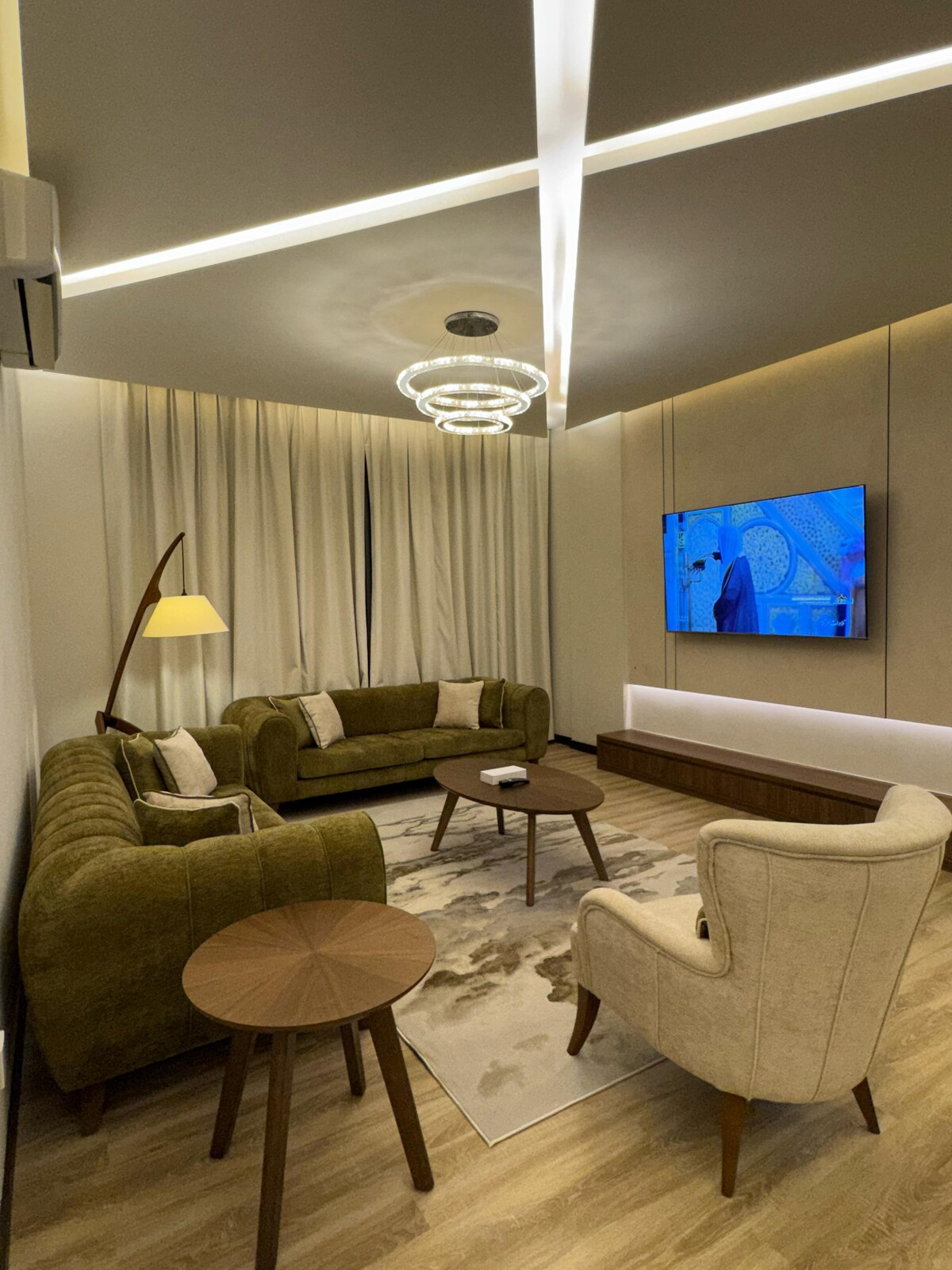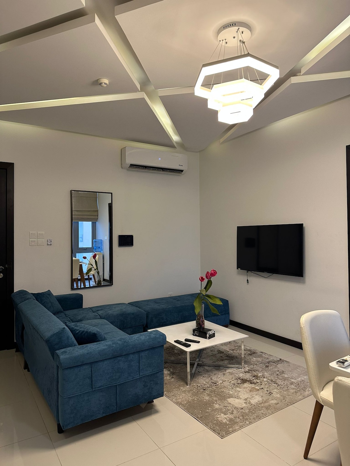 Cozy luxury 2-bedroom apartment in Janabiya, perfect for families. Ideally located next to King Fahad Causeway and close to Liwan, with many nearby facilities including restaurants, cafés, supermarkets, and a petrol station, offering comfort, convenience, and an upscale lifestyle