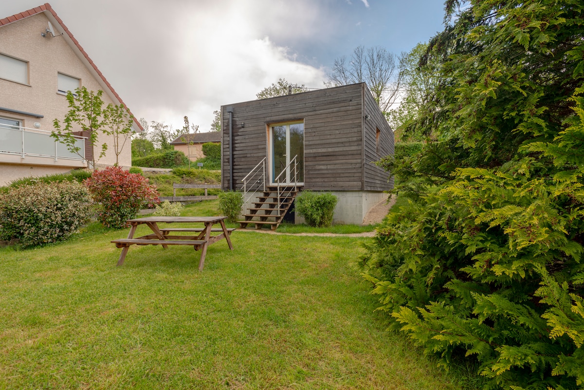En un entorno verde, esta casa de 35 m2 con estructura de madera, independiente, le dará la bienvenida para una estancia agradable. Compuesta por: - una sala de estar con una zona de cocina (mesa alta + 2 taburetes altos + 2 sillas altas) y una zona de estar (sofá cama, que no tiene la comodidad de una cama de verdad) - un dormitorio con una cama de 160 x 200 - cuna bajo petición - un cuarto de baño con ducha - un aseo independiente - un exterior donde comer y descansar
