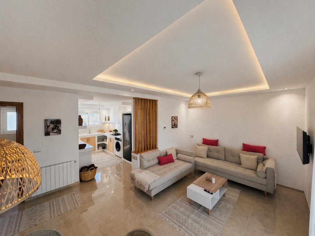 Este departamento de 2 ambientes totalmente equipado ofrece un entorno moderno y cómodo, perfecto para sus estadías en familia, con amigos o en pareja. El apartamento incluye: Dos dormitorios espaciosos con almacenamiento Una sala luminosa con Smart TV y aire acondicionado Una cocina equipada (heladera, horno, microondas, utensilios) Un cuarto de baño moderno Ubicación céntrica, cerca de cafés, restaurantes y del zoco A pocos pasos de la playa Wi-Fi de alta velocidad y aire acondicionado en todas las habitaciones