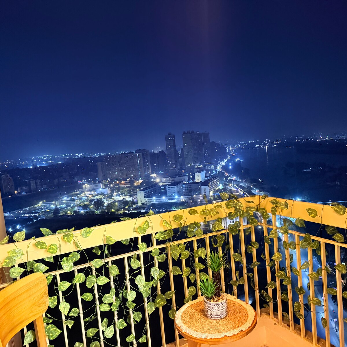 Penthouse on the 31st floor in Maadi Othman Towers, overlooking the Nile and Pyramids. Amenities • Private Balcony • Panoramic Nile & Pyramids views • Few steps to the Nile & 20 min to Downtown & Pyramids • Fully equipped designer kitchen(SMEG appliances) • Smart TVs fully set up with Netflix, YouTube. • Open Jacuzzi • Wi-Fi • 24/7 receptionist to assist guests • Ceaning service($30) • Pet-friendly Perfect luxury Cairo experience.