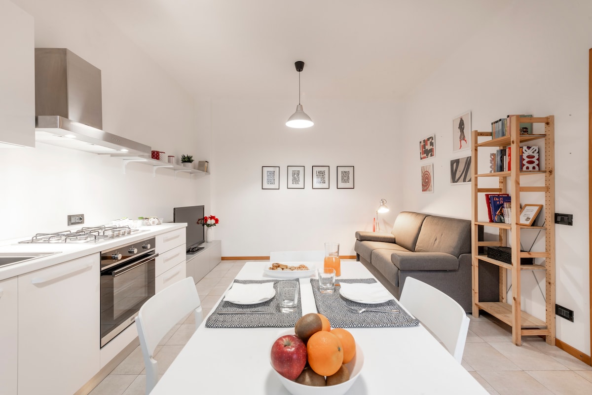 In the heart of the Navigli district, my 540 sq.ft. flat very meticulously renovated and decorated with the utmost attention to detail. Warm and comfortable, it's located at the beginning of the pedestrian area that leads to the Naviglio Grande. Characteristic, historical and world-famous neighborhood, it's dotted with restaurants, cafes, bars, interesting shops, art galleries...anything your heart desires. Well served by public transportation (metro & trams) as well as bike-sharing stations.
