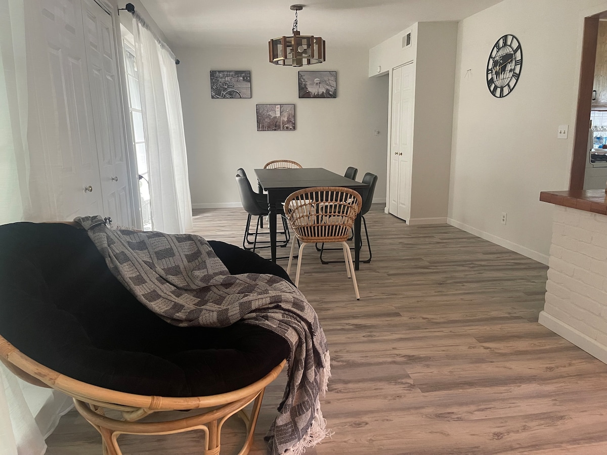¡Elegante casa moderna de mediados de siglo totalmente renovada! ¡Disfruta sin tener que hacer tareas de salida! Este refugio relajante ofrece lo mejor de ambos mundos: se encuentra a solo 4 manzanas de las mejores atracciones históricas del centro de Woodland y a 15 minutos en coche del Aeropuerto Internacional de Sacramento y de la Universidad de California en Davis. Pagamos a nuestros increíbles limpiadores un salario digno, reciben el 100 % de nuestra tarifa de limpieza.