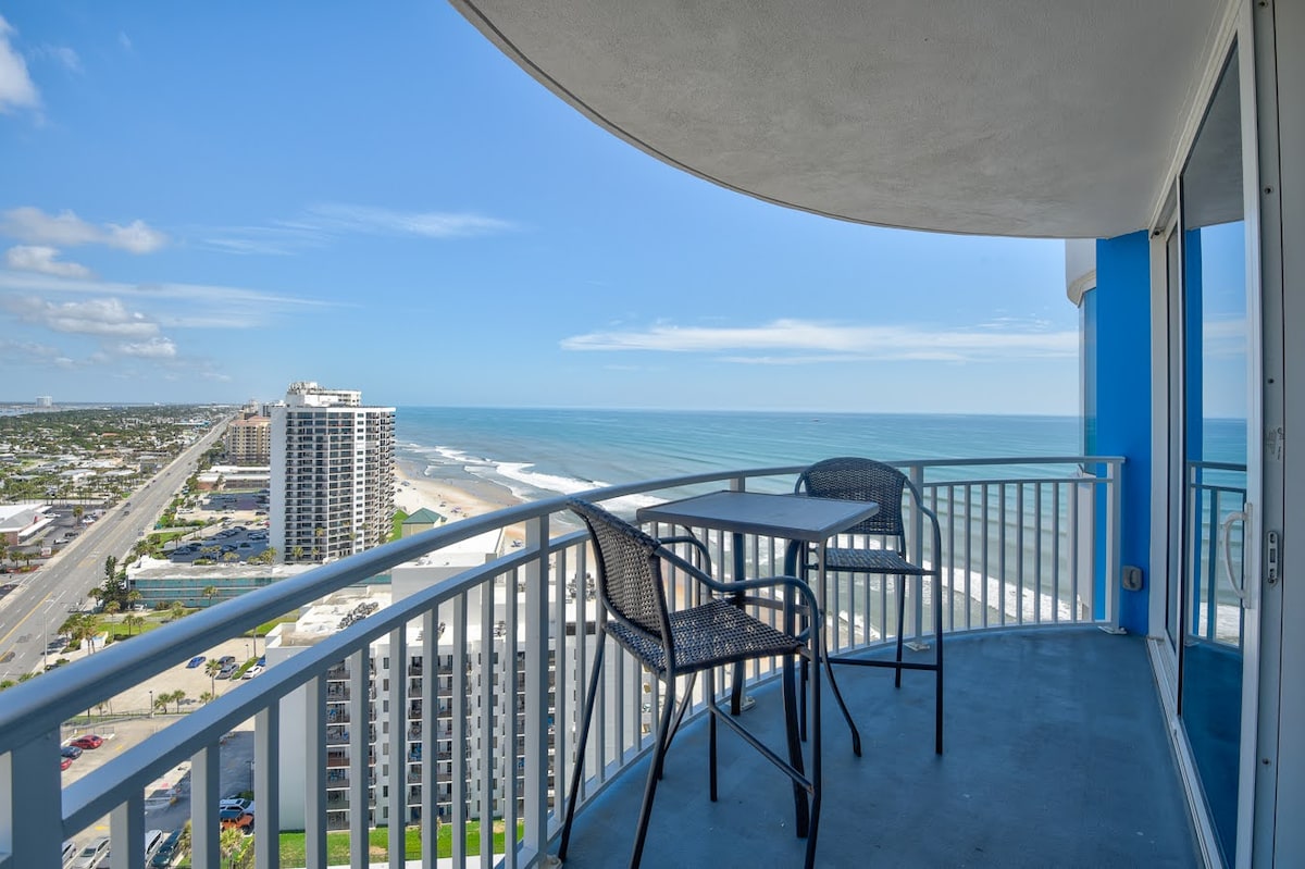 Escápate al Ocean Awaysis🌊, tu destino de ensueño frente a la playa enclavado en el vibrante epicentro de Daytona. A poca distancia a pie de Main Street, el muelle y otros lugares imprescindibles, nuestro condominio ofrece la mezcla perfecta de comodidad y lujo costero. Experimenta el epítome de la vida frente a la playa con balcón privado con vistas al mar. Cada detalle está cuidadosamente seleccionado para proporcionar un refugio inigualable en una dicha costera. ⭐️ ¡La piscina, el jacuzzi, el bar tiki y el acceso directo a la playa están abiertos! ⭐️
