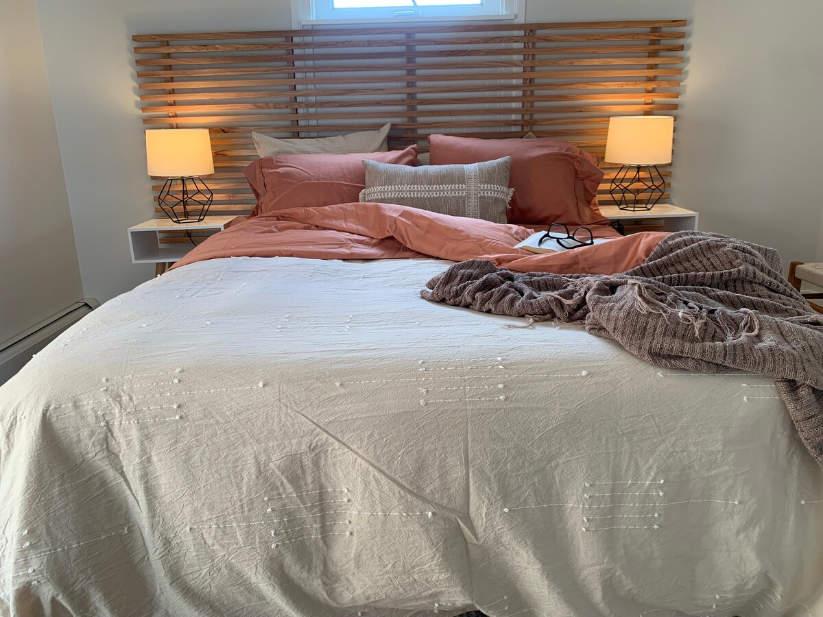 ¡Te damos la bienvenida a tu experiencia en Marquette Mad Men! Disfrutarás de las vistas del lago Superior mientras tomas tu bebida en nuestro apartamento amueblado Retro Mid-Century, completo con la gama rosa Mayme. Ubicado en el centro justo al lado de tiendas, microcervecerías, museo infantil, ¡puerto inferior y mucho más! Al final del día, relájate en la tumbona del contorno mientras escuchas discos vintage. Duerme en una cama de algodón orgánico tamaño king de primera línea.