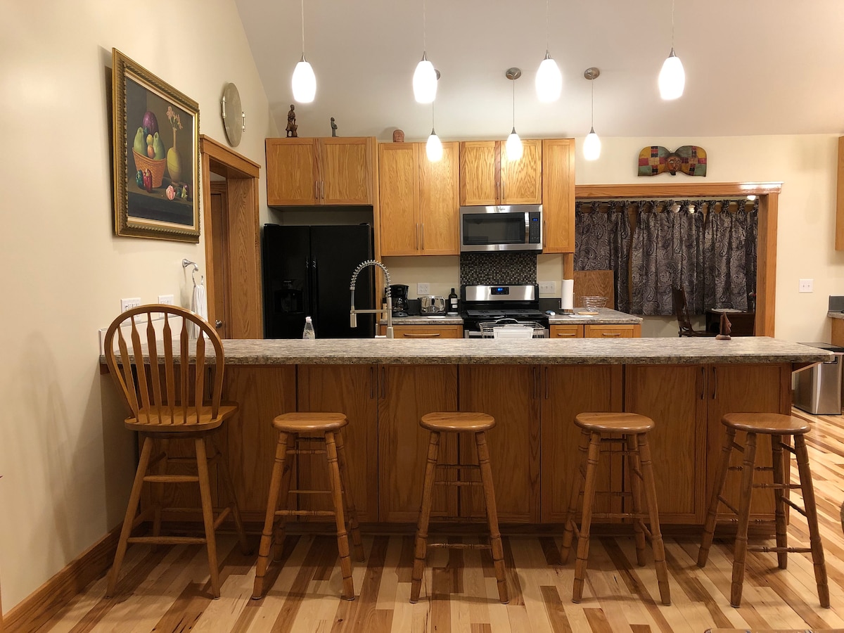 ¡Retiro moderno en Malta, IL a solo 5–10 minutos de NIU y Huskie Stadium! Perfecto para padres, exalumnos y fanáticos que visitan el campus, así como para profesionales de la salud en tareas locales. Disfrutá de una luminosa sala de estar abierta con TV inteligente, una cocina totalmente equipada y una barra de café, habitaciones acogedoras con sábanas frescas, WiFi rápido y un barrio tranquilo. Cerca del centro de DeKalb, restaurantes, tiendas y hospitales para estancias cortas y largas.