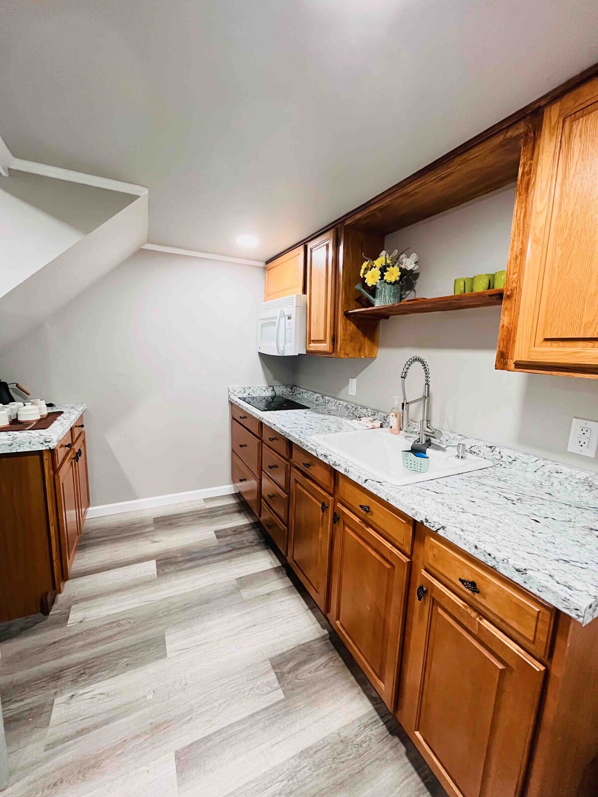 Si buscas una ubicación tranquila y práctica en la zona de Paoli para una estancia cómoda, bienvenido a East Central Ave. Cerca de tiendas, restaurantes, senderos para caminar y la estación de tren de Paoli. Esta suite es un sótano, pero tiene entrada privada, baño completo y patio. La cocina tiene armarios blancos con electrodomésticos, incluyendo una estufa, un horno, una cafetera, una tostadora, un hervidor de agua y una nevera. Ideal para una familia de 5, 1 dormitorio con una cama tamaño queen para 2 y 2 sofás cama para 3.
