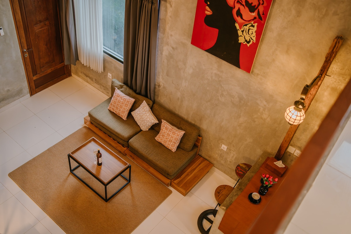 Apartamentos con servicios, modernos y elegantes, de estilo loft, situados junto a la playa de Sanur, Bali. Sala de estar de planta abierta en la planta baja con suelos de hormigón pulido, cómodo sofá y cocina totalmente equipada con barra para sentarse. Zona de dormitorio en el altillo de arriba con baño privado. A 300 metros a pie de la playa de Sanur. En el exterior, una terraza privada con vistas a la piscina comunitaria de 12 metros y dos patios para tomar el sol. Televisor grande con Netflix y wifi. Muy singular para Sanur, ubicación perfecta para unas relajantes vacaciones cortas o un alquiler a largo plazo.
