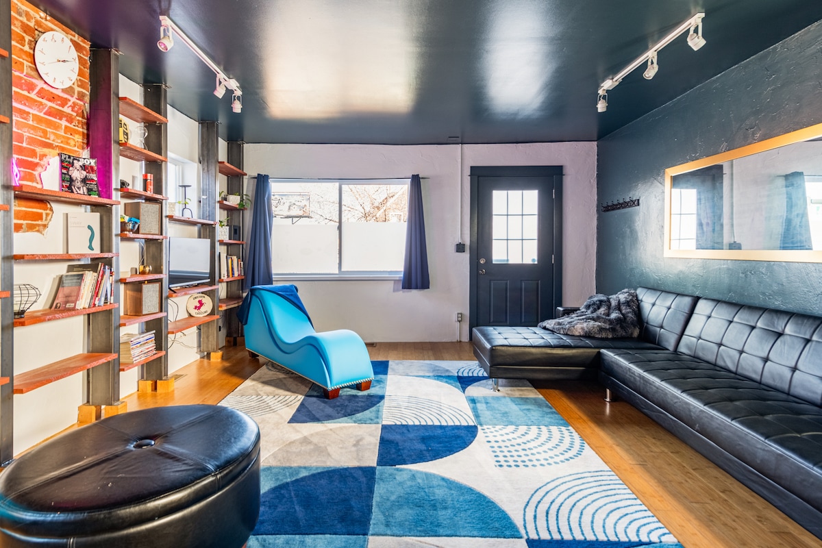 Bright/centrally located 1 BR, 1 BA barn house near downtown in a beautiful neighborhood located a few blocks from many good restaurants, bars, parks, coffee shops, and more. Lounge by the fireplace, listen to some vinyl, enjoy the plants throughout. Large patio with porch swings. Spacious bedroom with luxurious queen mattress, cotton bedding and blackout curtains. Laptop-friendly workspace plus barn doors upstairs. Easy access to everything in Denver, but you may just choose to stay in.