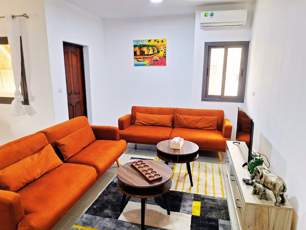 🏆Welcome to "Suite Kimia" - your luxury 1-bedroom apartment in Abidjan Cocody Vallon, near Rue des Jardins and 10 min from Plateau. ✨Fully furnished T2 by international standard with high-speed WiFi (100Mbps), Netflix, workspace, AC, hotel-quality bedding and fully equipped kitchen. ✨Located at the first story of a secure 2-stories building with parking, ideal for business travelers, expats, and couples seeking a modern, comfortable and well-located stay in Abidjan.