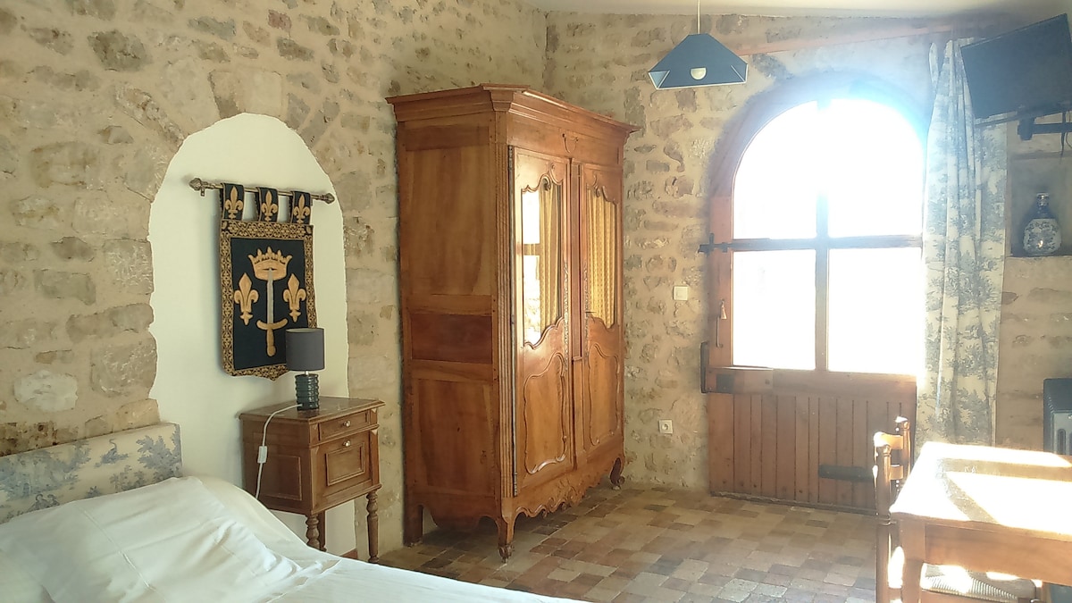 Se alojará en un antiguo castillo vinícola, dormirá en el «Estudio» equipado con una cama de 2 plazas de 180 cm, El Estudio está equipado con microondas, nevera, cafetera, hervidor de agua, placa eléctrica, barbacoa. Podrá disfrutar de la piscina climatizada en temporada y de la pista de tenis. También hay un parque arbolado a su disposición para relajarse.