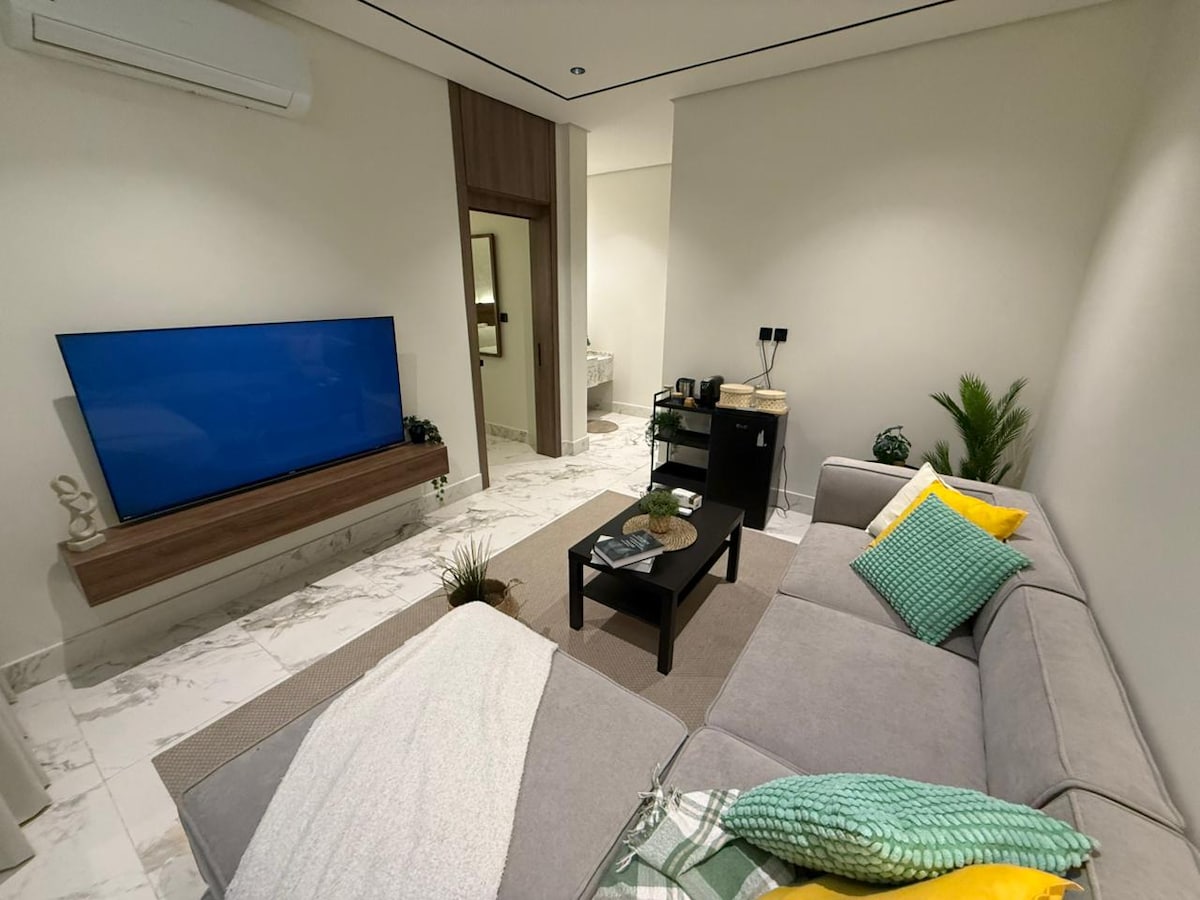 Te damos la bienvenida a nuestro elegante apartamento tipo estudio en Khobar. Este moderno espacio es perfecto para viajeros solitarios o parejas que buscan comodidad y entretenimiento. El estudio cuenta con una cómoda cama y un sofá, un rincón de café bien equipado, un gabinete. Disfruta de tus programas favoritos en el televisor inteligente de 60 pulgadas, con acceso gratuito a Netflix. Ya sea que te estés poniendo al día con tu serie favorita o disfrutando de una noche de cine, el entretenimiento está a tu alcance. ¡Se ha instalado Internet de fibra de alta velocidad!