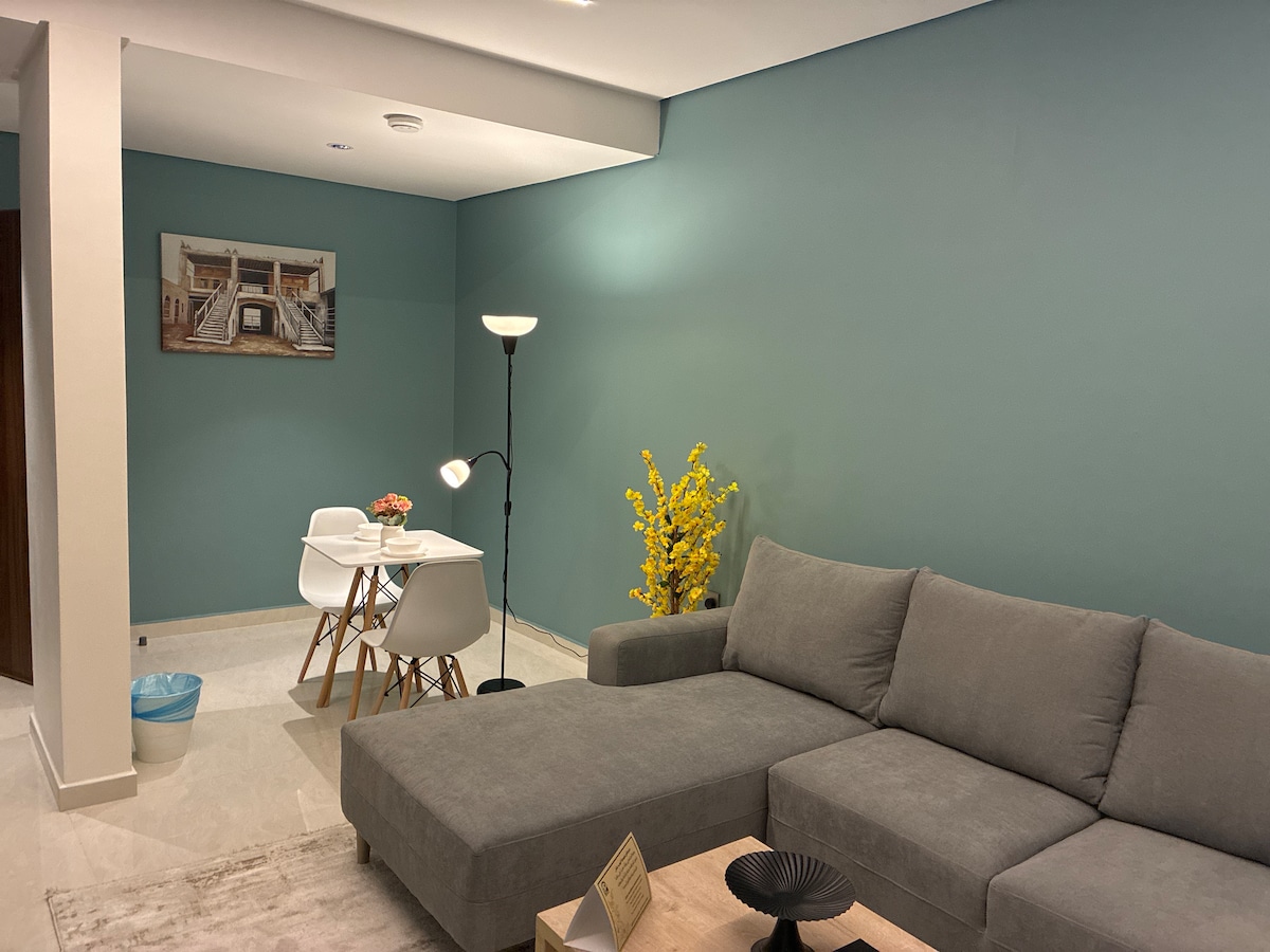 Enjoy your stay in this stylish and central 1bedroom apartment, designed with modern touches and cozy comfort. The space features: • Queen bed • Smart TV • Comfortable seating • Bathroom all in one open, airy layout. 📍 Prime Location: • 10 min to Ajdan walk/ Corniche • 6 min to Dhahran Mall • 10 min to Aramco & KFUPM • 9 min to Bahrain Causeway • Only 2 min walk to Flamingo Mall Perfect for business travelers or couples looking for a relaxing, well-connected stay in Al Khobar.
