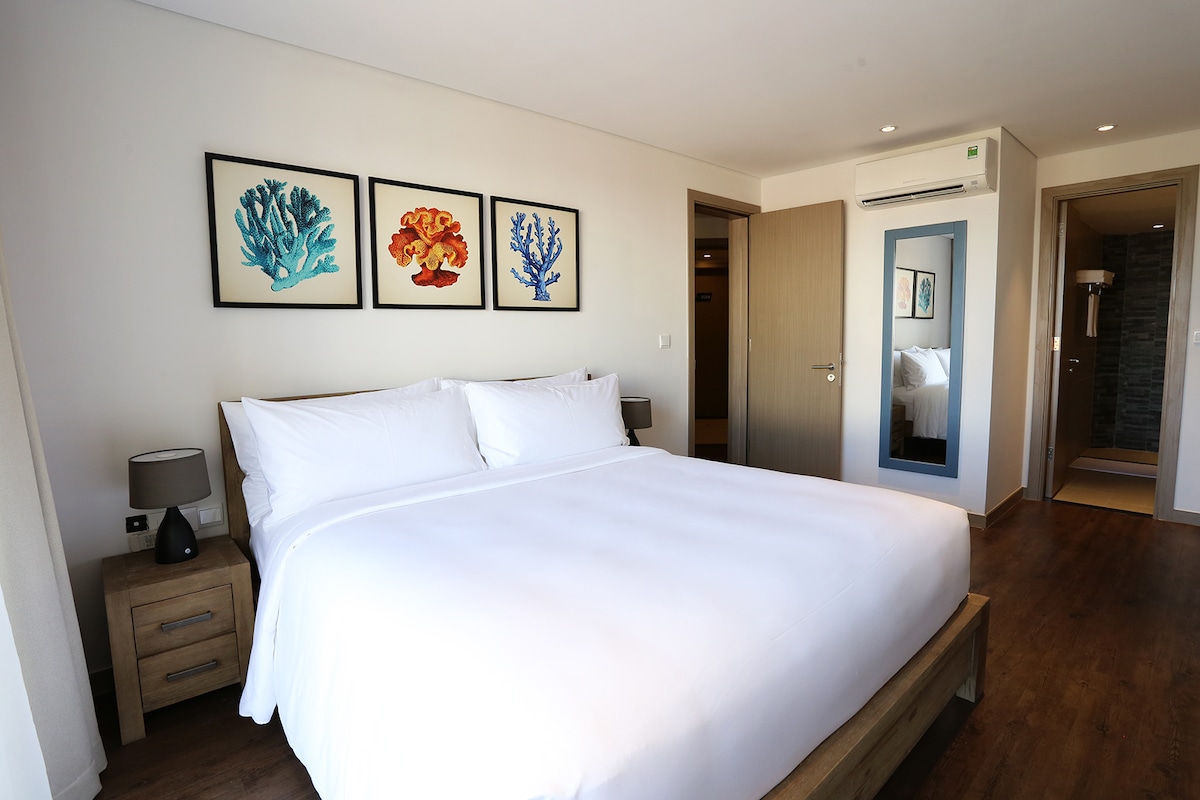 Departamento de LUJO TOTALMENTE EQUIPADO ubicado en 5★ Da Nang Beach Resort con servicios esenciales, jardín, WIFI, playa privada...Desde el departamento puedes disfrutar del amanecer/atardecer o la isla de CuLaoCham. Mi apartamento es adecuado para una pareja, familia con 2 niños, grupo de 2 a 4 adultos para unas vacaciones cortas o estadías largas. Ofrecemos desayuno, almuerzo, cena en el departamento si lo solicitas GRATIS: Regalo de☆ bienvenida: agua, té, café. ☆Habitaciones limpias: servicio de limpieza diario, cambio de toallas todos los días ☆Cuna para bebés