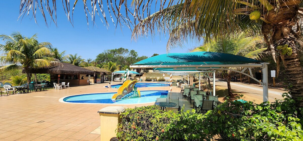 ¡Felicidades! Has descubierto la escapada perfecta en Caldas Novas: 🚗 Garaje privado ya incluido; 📍 Ubicación (a pie) de: panaderías, farmacias, discotecas, centros comerciales, restaurantes, feria, tiendas... 🌊 4 piscinas y sauna con Aguas Termales (climatizadas), 1 natural, 1 bar húmedo; 🍴 Cocina equipada; 🥶 Aire Acondicionado; 📺 TV, Wi-Fi y espacio de trabajo; 🐾 Los animales son bienvenidos; 🪟 Redes de seguridad (ventanas y balcón) más seguridad para niños y mascotas.
