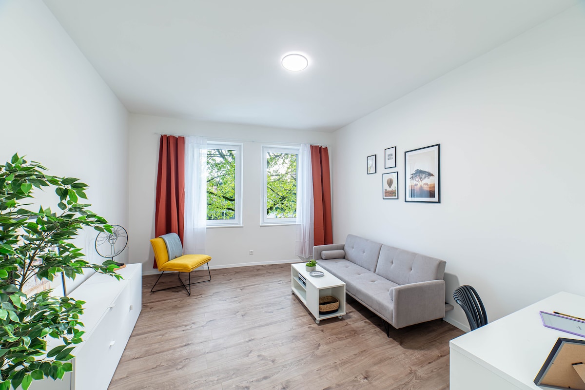 ¡Te damos la bienvenida! Regalate un descanso en este oasis tranquilo. Nuestro departamento de 82 m² recién renovado en el primer piso de una casa familiar ofrece todo lo que tu corazón desea: - Vista verde: disfrutá del desayuno en el balcón soleado, con panecillos frescos de la panadería justo al otro lado de la calle. ¡Un comienzo perfecto para el día! - Luminoso y acogedor: lleno de luz natural, lo que crea un ambiente cálido. - Seguro: barrio apto para familias. - Ubicación fantástica: 16 min → Estación Central 15 min Feria → de comercio A 2,5 km → del zoológico