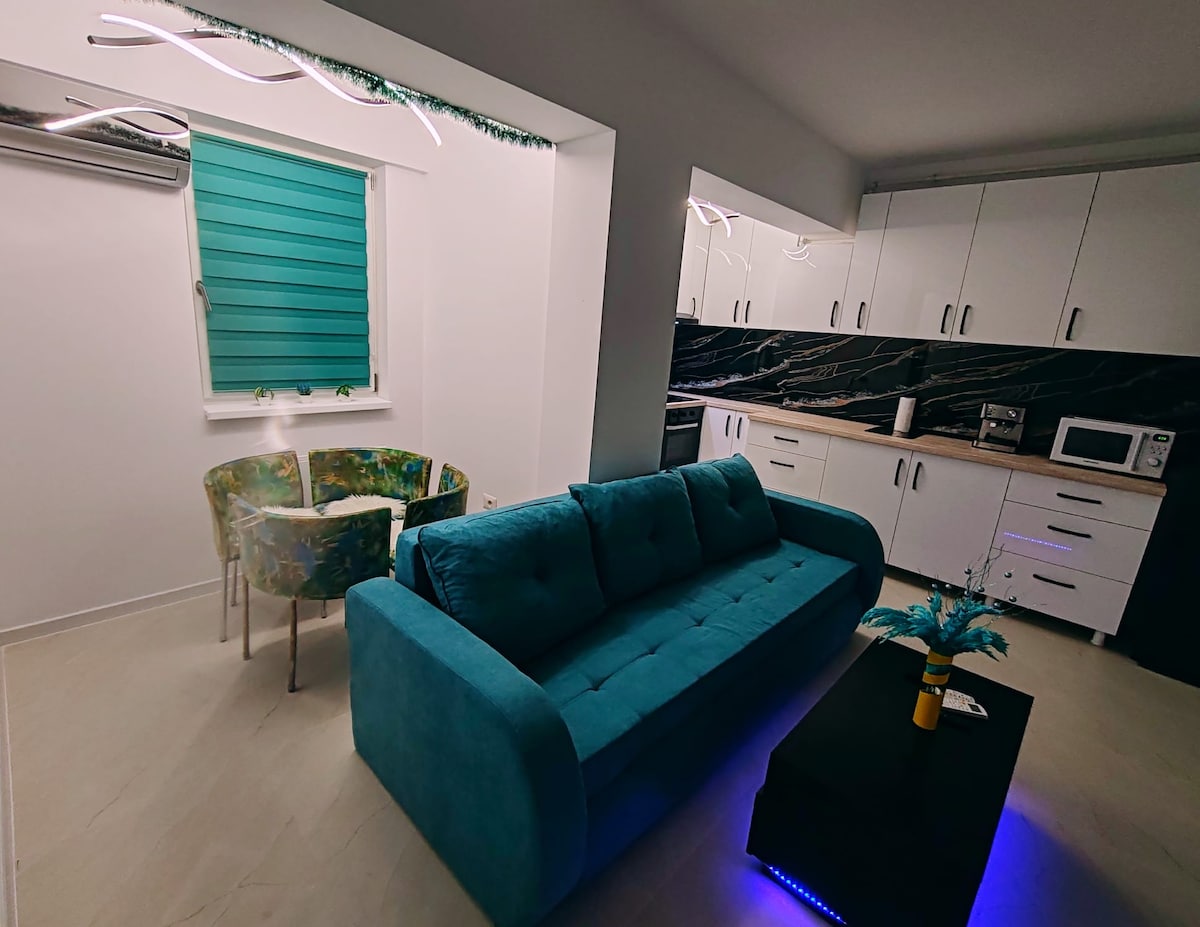 Departamento de lujo organizado desde - Dormitorio principal con baño privado - Dormitorio secundario, generosa sala de estar. - baño secundario - Cocina totalmente equipada. - 2 generosas terrazas - Estacionamiento privado dentro del edificio con acceso directo al ascensor. La ubicación del apartamento está en una zona ideal con rápido acceso a todos los puntos de interés de la ciudad: - Facultad de medicina a 200 metros. - hospital regional a 500 metros. - Parque Nicolae Romanescu a 1 km. - la universidad de Craiova a 1 km
