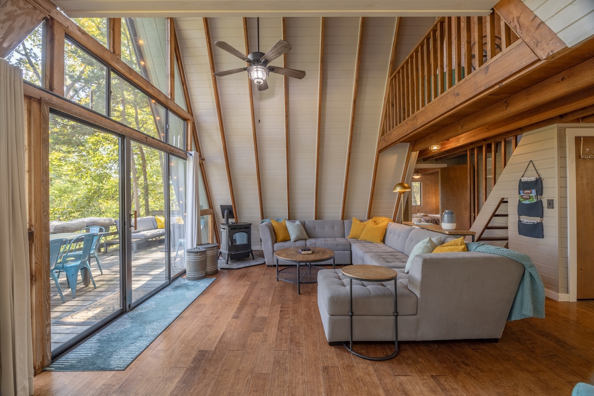Nestled in the woods overlooking Foxfire Lake, this A-frame offers the perfect four-season escape. When the snow falls, it transforms into the quintessential winter retreat. Cozy up beside the stone fireplace, where views of the lake are framed by frosted trees. As the weather warms, the lake calls! Enjoy direct access to Foxfire Lake from our private dock. Spend your days fishing, swimming, or simply basking in the sun. This chalet will help you find joy and relaxation, whatever the season.