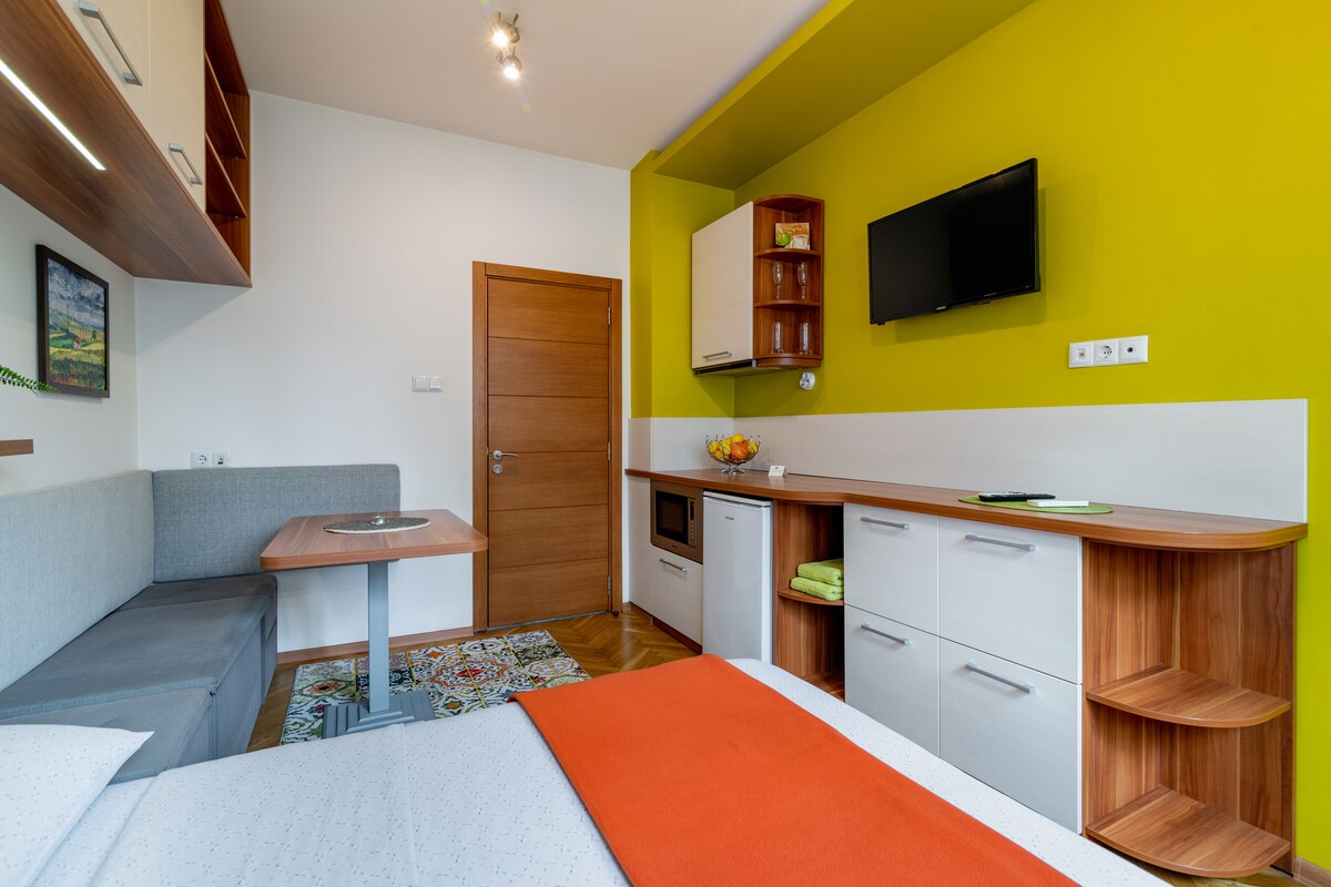 Cozy and modern, the Studio offers a nice and comfortable double bed, sitting/dinning area, kitchenette and fully equipped bathroom. Located in the very heart of Varna, DOLCE VITA is just a few minutes away from the beach, Sea garden and the epic hotel "Black Sea". Surrounded by the most exclusive restaurants, bars, sports and shopping facilities, DOLCE VITA is your best choice for a nice holiday or a business trip in Varna.