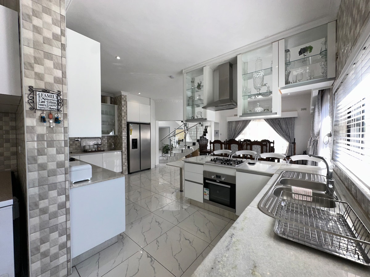 Bienvenido a nuestro espacioso y cómodo departamento de tres dormitorios ubicado en la serena zona de Highlands de Harare. Ideal para familias, grupos o viajeros de negocios, el departamento ofrece una mezcla de vida moderna y comodidad hogareña. El dormitorio principal cuenta con una cama tamaño king y un baño privado para mayor comodidad. El segundo dormitorio tiene una acogedora cama tamaño queen, mientras que el tercer dormitorio está cuidadosamente preparado para los niños, con dos camas individuales.