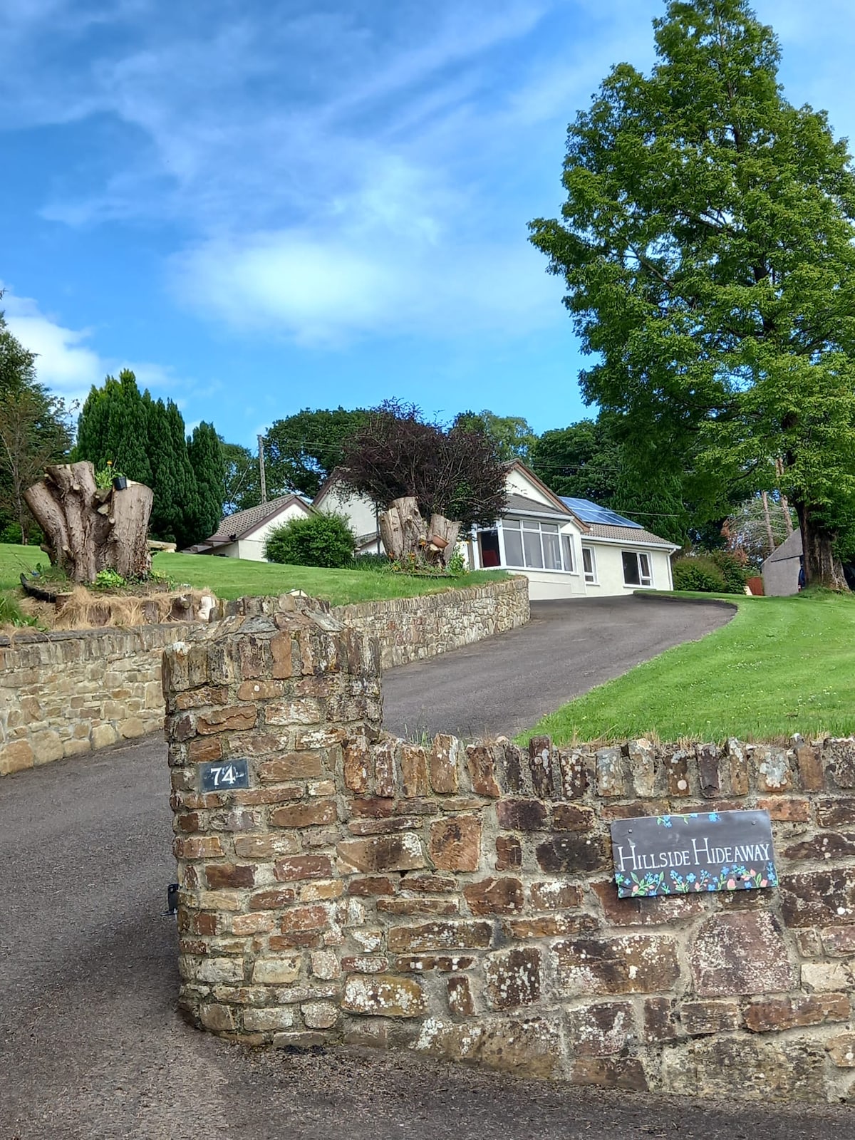 Amplio bungalow de 4 dormitorios con un hermoso y amplio jardín. Céntrico para Strabane, Derry y Letterkenny. Una casa familiar bien equipada que ofrece privacidad y unas vistas impresionantes al campo y que admite mascotas con una gran pista para perros y una perrera.
