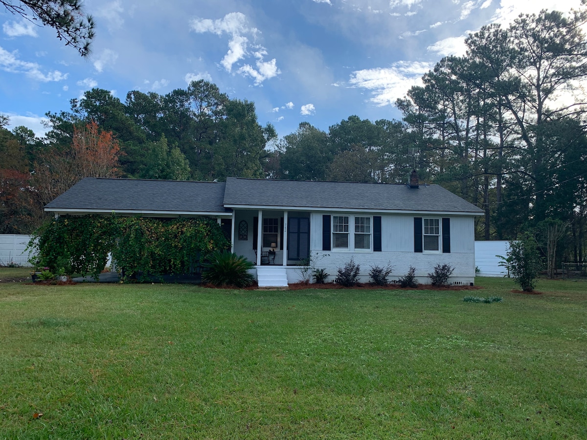 En este alojamiento se respira tranquilidad: ¡relájate con toda la familia! Nuestra casa de campo de 2 dormitorios y 1 baño está a unos 20 minutos de la encantadora ciudad de Summerville y a 40 minutos del centro histórico de Charleston. La casa tiene suelos de madera dura vintage y hermosas encimeras de roble. Estancia mínima 14 noches Estancia máxima: 3 meses.