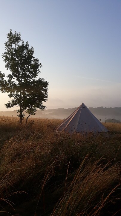 Relájate en esta espaciosa y cómoda tienda de safari "Tipi" (estilo emperador), con espacio para hasta 4 personas, hermosas vistas, terraza bajo las estrellas, en medio de las colinas de la campiña francesa, en nuestro minicamping natural (11 lugares) - Camping Florecer - a solo unos pasos de la ciudad medieval de Saint Robert, "l'un des plus beaux villages de France".