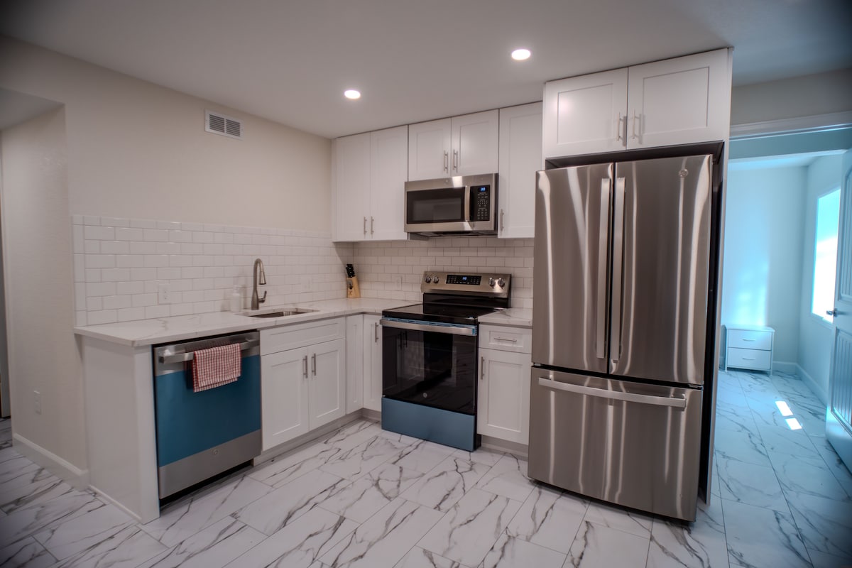 Este departamento amueblado de un dormitorio cuenta con un diseño de concepto abierto con actualizaciones modernas. El espacioso dormitorio tiene una cama tamaño queen y área de trabajo con escritorio. La sala de estar está amueblada con un lujoso sofá y una tumbona, y cuenta con un televisor de pantalla plana y una consola. La cocina está totalmente equipada con nevera de tamaño completo, estufa, horno y microondas. Con muchos gabinetes, espacio en el mostrador, es perfecto para tus necesidades culinarias. Este alojamiento también tiene acceso a internet de alta velocidad y lavandería.