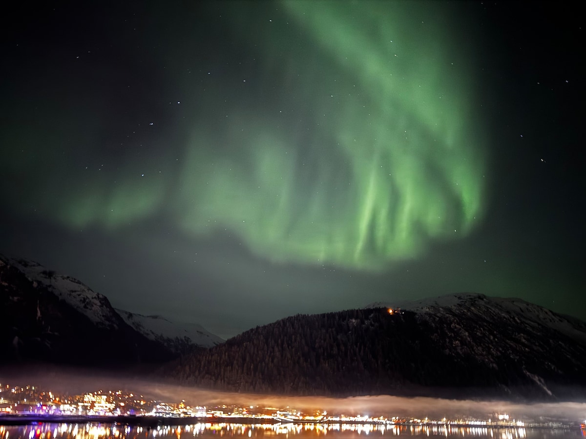Esta ubicación tiene lo mejor de ambos mundos. Se encuentra a poca distancia a pie del centro histórico y vibrante, pero también ofrece un santuario lejos del bullicio. Ubicado en la isla Douglas, justo al otro lado del puente Juneau-Douglas, podrás disfrutar viendo salir el sol detrás de la cresta Gastineau y quedarte dormido con los cruceros iluminando el canal. La isla Douglas ofrece una increíble playa de arena, rutas de senderismo y hermosas vistas de Alaska desde todos los ángulos.
