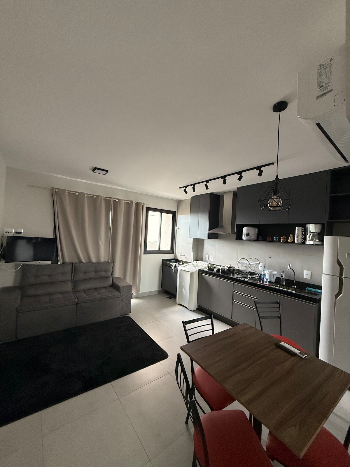 Aproveite uma estadia confortável neste cantinho preparado com muito carinho. O espaço de 1 quarto é moderno, iluminado e pensado para que você se sinta em casa. A sala conta com TV smart e um ambiente acolhedor p/ relaxar. A cozinha é equipada com o essencial e o quarto oferece cama confortável, roupas de cama, itens básicos e ar-condicionado. A localização é ótima, perto de tudo que você precisa. Cada detalhe foi preparado c/ cuidado para que sua experiência seja leve e agradável. 💛