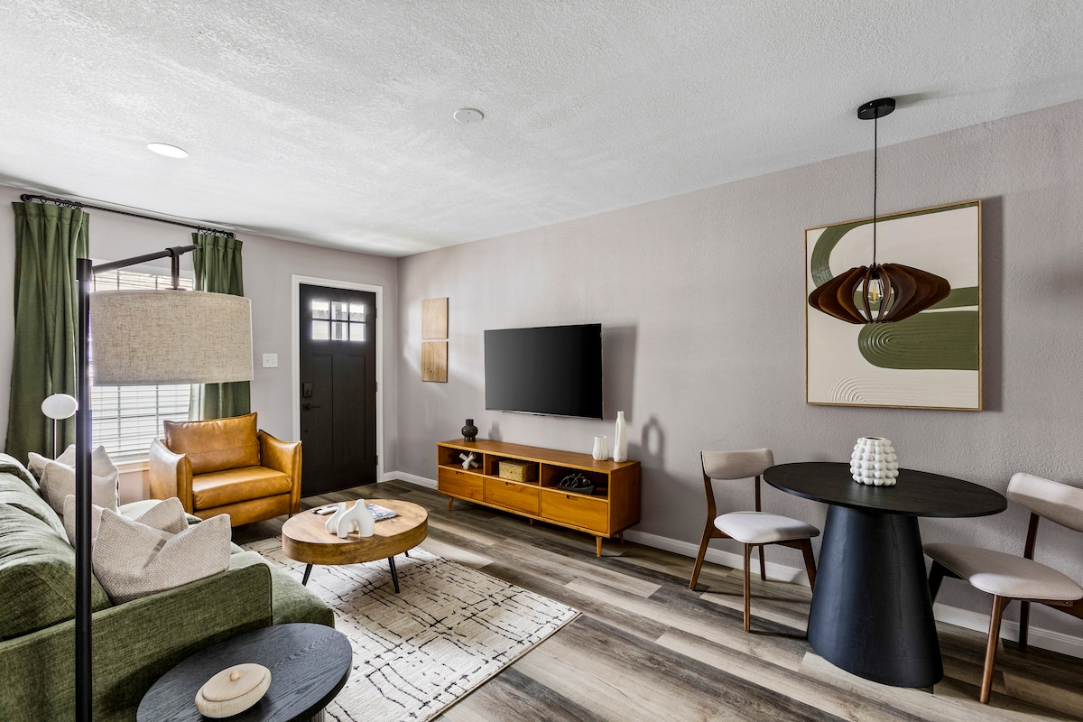 Descubre Houston en este dúplex elegante, con un interior chic monocromático y toques de arte colorido. Tu porche y un gazebo con BBQ en un jardín exuberante te esperan. A solo 5 minutos de Whole Foods y Buffalo Bayou, ubicado en el vibrante barrio de Lower Montrose. Con dos camas queen y un acogedor espacio vital, las atracciones de Houston están a tu alcance. Prepárate para una experiencia inolvidable. ¡Reserva ahora para tu escapada perfecta en Houston!