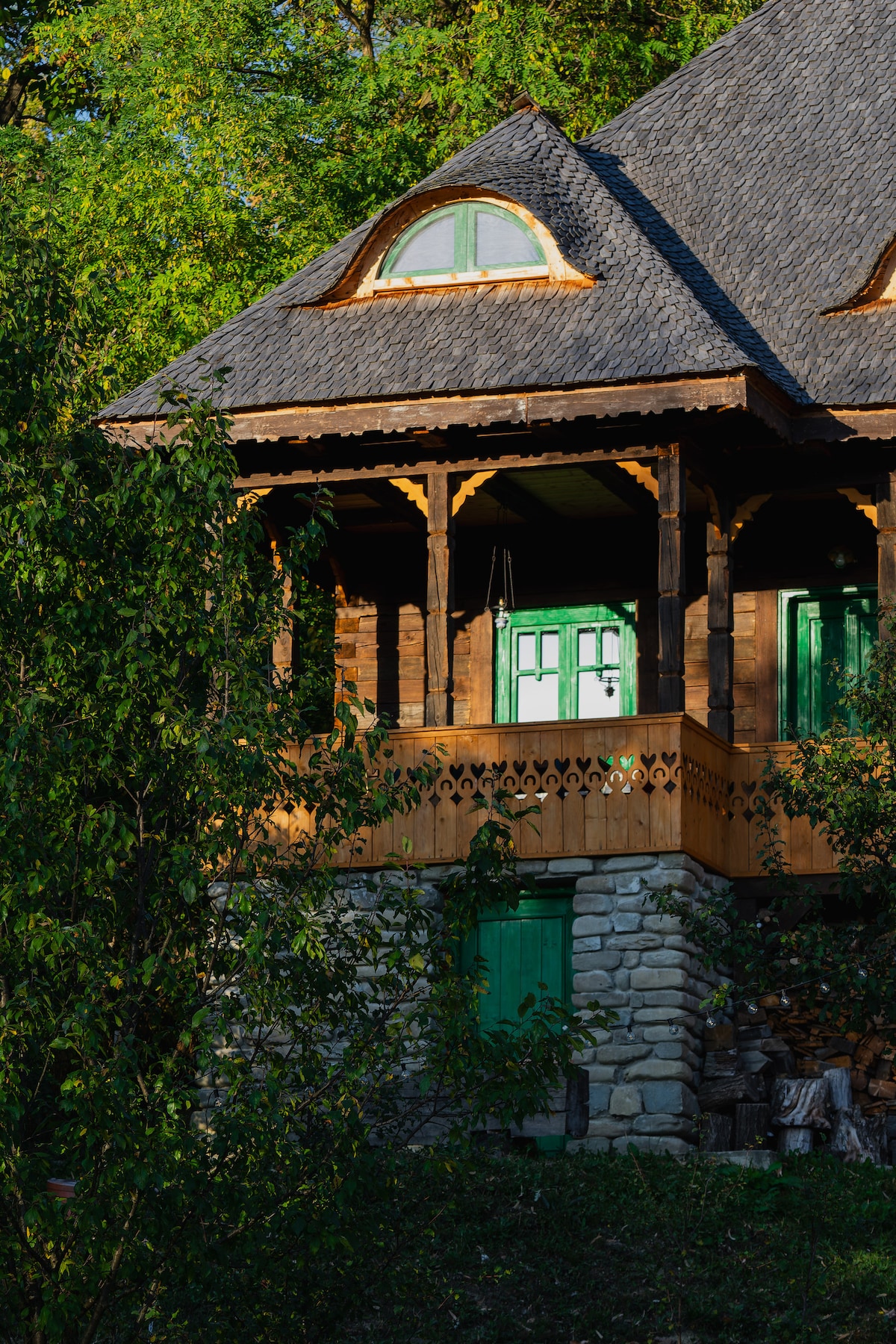 Una casa construida con materiales naturales, construida con orgullo sobre una pared de piedra sobre la cual colocamos vigas antiguas en su mayoría recuperadas de un granero demolido en Sălciua, condado de Alba. El techo está hecho de tejas de montaña porque valoramos la forma en que solían trabajar nuestros antepasados, las paredes están barnizadas, los pisos de madera están en el suelo, los muebles están hechos de madera vieja o recogidos de los pueblos, y la casa se calienta con una estufa de leña, el corazón de la casa.