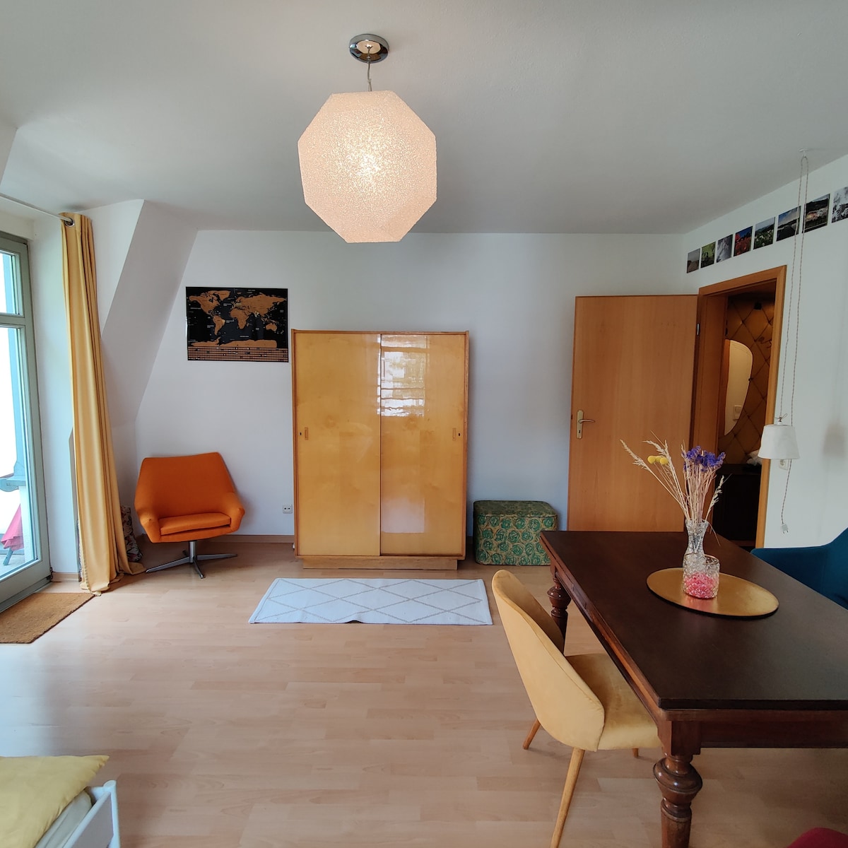 Si busca un apartamento acogedor y luminoso para un viaje corto a Dresde, está en el lugar correcto. El apartamento de una habitación está situado en el límite de la animada y popular Neustadt, el barrio de moda de Dresde. Se encuentra en el 4º piso en el ático. En el apartamento hay un baño con bañera, un pasillo corto y una cocina a la que se puede acceder a través de la sala de estar/dormitorio. También hay un balcón que invita a quedarse.