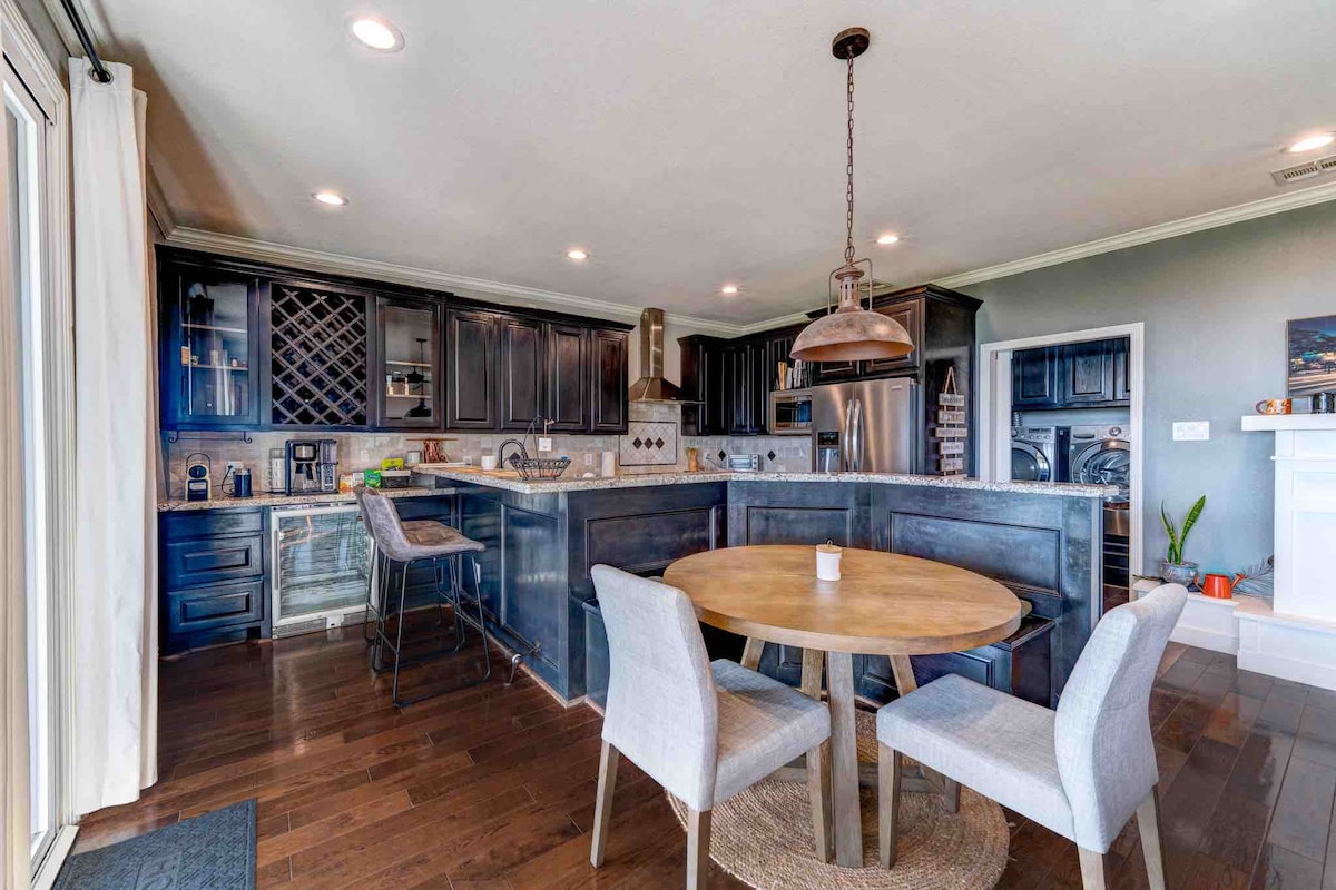 ¡La luz natural abunda en esta moderna casa de campo en las colinas! Explora 30 acres de impresionantes robles y flores silvestres de temporada. Sumergite en tu jacuzzi privado en la cima o refrescate en la pileta. El sofá al aire libre está posicionado para la observación de aves y la lectura de libros. Asa a la parrilla al aire libre, cocina adentro o aventúrate a una de las bodegas, destilerías o restaurantes cercanos. Pero cuando el sol baje, prepárate para las puestas de sol inigualables y los cielos más estrellados de Texas. ¡Les damos la bienvenida a la felicidad!