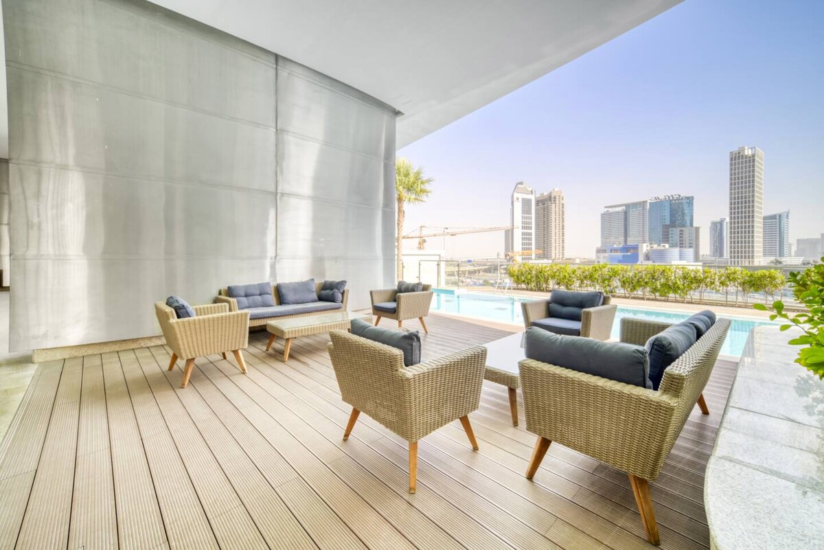 Disfrutá de una estadía elegante y con estilo en este moderno estudio en 15 Northside Tower, Business Bay 🌆. Relajate en una cama cómoda, disfrutá de la Smart TV, wifi rápido 📶, una cocina elegante totalmente equipada y la facilidad de una lavadora para estadías más largas. Aprovechá la piscina🏊♂️, el gimnasio 💪 y la seguridad las 24 horas, los 7 días de la semana, todo a pocos minutos del centro de Dubai, el centro comercial de Dubai y el animado paseo del canal. Perfecto para personas que viajan solas o parejas.