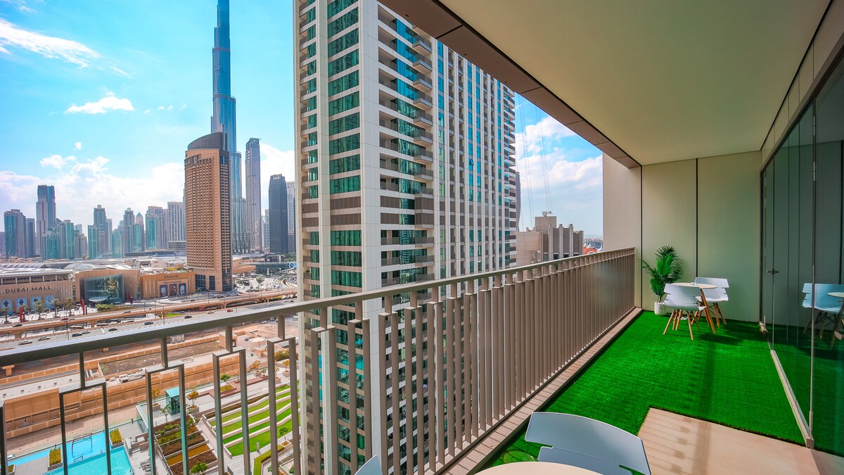 Vistas al Burj Khalifa con balcón de césped en el centro