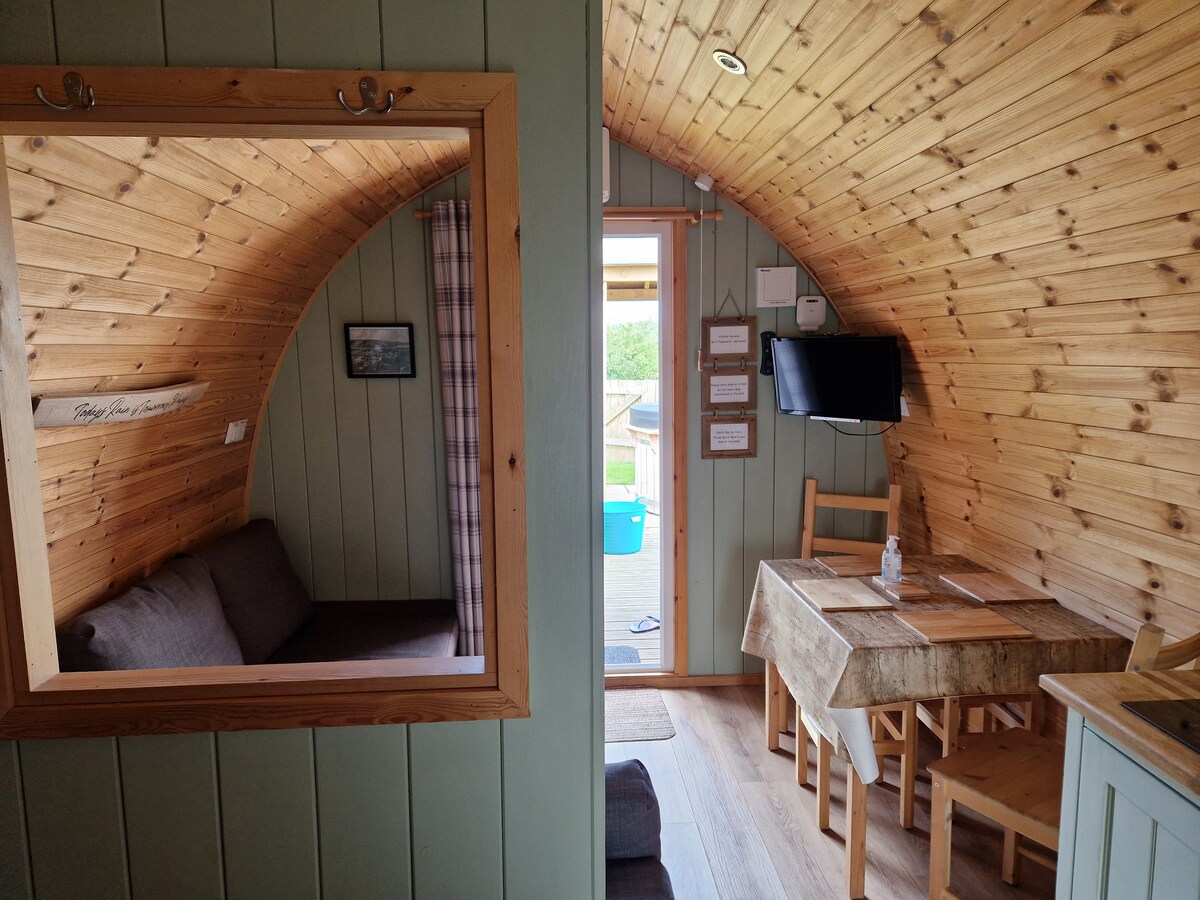 The wood fired hot tubs added to our standard luxury en suite glamping pods offer you the opportunity to relax even more in the tranquil nature that surrounds you. High speed internet and Netflix enabled TV are standard and underfloor heating, electric shower, equipped micro kitchen, standard double bed, pull out sofa bed, private outdoor decking and seating area, and a fire pit with grill ensure everyone is catered for! Dogs most welcome - £20 surcharge for up to 2 dogs per stay.