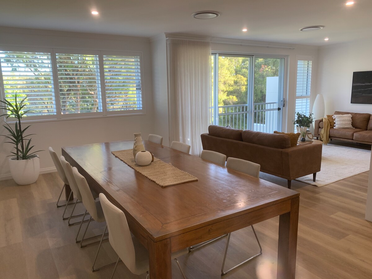 Bienvenido a Bayside Palms, una hermosa casa que combina la vibración de Palm Springs con el encanto costero. La zona exterior cuenta con una amplia terraza con vistas a un patio cubierto de hierba parcialmente sombreado, completo con baño climatizado, barbacoa, mesa de comedor, tumbona, cama elástica y ducha al aire libre, perfecta para los días de playa. En el interior, encontrarás juegos, una PS3 y DVD para noches acogedoras junto al fuego de leña. ¡Los adultos también pueden disfrutar de un gimnasio en casa! Para aquellos entusiastas de la cocina, cocina un banquete en nuestra cocina bien equipada.