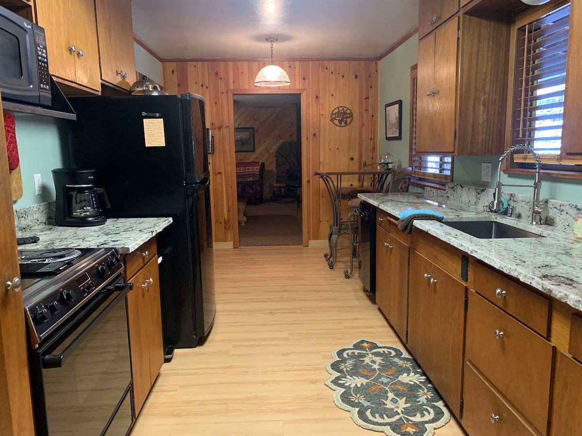Recientemente remodelada y amueblada con buen gusto, esta relajante y acogedora casa de campo cuenta con un encanto único con su propio arroyo privado que recorre la propiedad. ¡El arroyo corre a lo largo del dormitorio trasero y continúa bajo el comedor de la casa actual! Construida en 1912, nuestra casa tiene todo el encanto de antaño con todas las comodidades que necesitas en esta década. Si buscas una escapada relajante a la montaña con fácil acceso a restaurantes y actividades al aire libre, este es el lugar ideal.