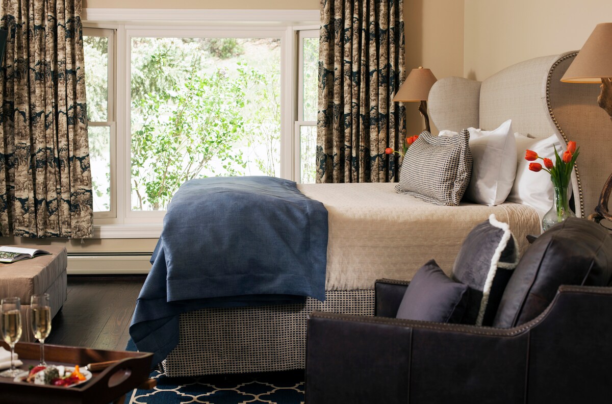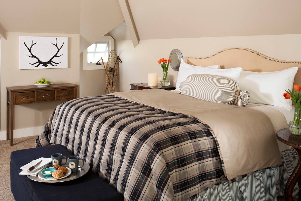 In classic Colorado style, this ground floor Carriage House Guest Room has a king size pillow top bed and a set of bunk beds that will suit a family of four or a group of friends! There’s a gas stove to warm your toes and even a ductless air conditioner to cool off after our Summer days. Some of the amenities you will find in Elk Creek are complimentary Wi-Fi, a flat screen TV with DIRECTV, an iPod Docking Station, field guides and of course, our Antlers on the Creek comfy robes! There is also a Keurig coffee maker and your fridge is stocked with complimentary waters, sodas & juice.