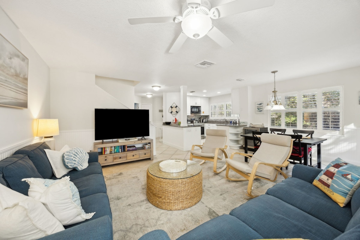 50 % DE DESCUENTO POR UNA ESTADÍA DE UN MES EN ENE Y FEB Tu hogar lejos de casa mientras te relajas y disfrutas de Amelia Island. Esta casa privada de tres dormitorios y dos baños recientemente remodelada se encuentra en la comunidad cerrada de Summer Beach. Ubicado en una hermosa y tranquila calle arbolada a solo 2 minutos a pie de la playa o la piscina comunitaria, ofrece todas las comodidades de un hogar, incluidos electrodomésticos SS, encimeras de granito, tragaluces, baños actualizados, lavandería y suite principal. Esta casa es perfecta para reuniones familiares y de amigos.