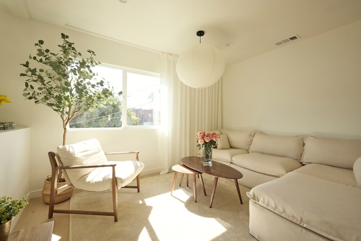 A bright, tranquil space with a clean, modern style, perfect for relaxing after a day of work or exploring Los Angeles. Located in a quiet, residential part of Highland Park, with York Blvd within walking distance and Figueroa Street a short drive away. Most guests use Uber or a car to explore beyond the neighborhood. Downtown LA, Dodger Stadium, Pasadena, Hollywood, Glendale, and Burbank are all easily accessible by car.